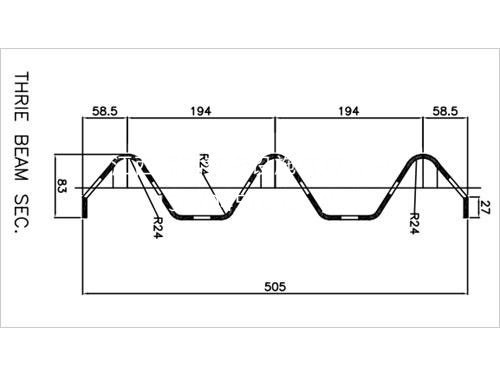 Gr-SB-1B1路侧SB级三波波形梁护栏,立柱间距1m,预埋套筒式;